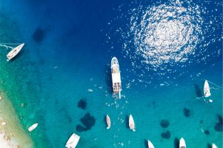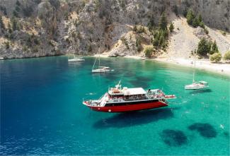 Dive into the clear, cool waters of Agios Georgios Bay from the platform of our boat, and enjoy an unforgettable experience of summer carefreeness, in a landscape similar to which you will hardly ever find again! On board, you will find free full-face masks, respirators, inflatables and life jackets, for you to enjoy to the fullest the seductive beauty of the beach while in and out of the water, whereas after your bath you can use the freshwater showers. The best moment of our trip to Symi is now, the time for splashing around in the beautiful Agios Georgios Bay!